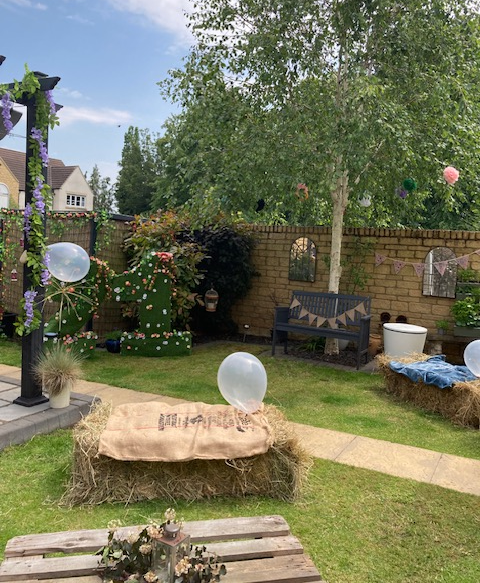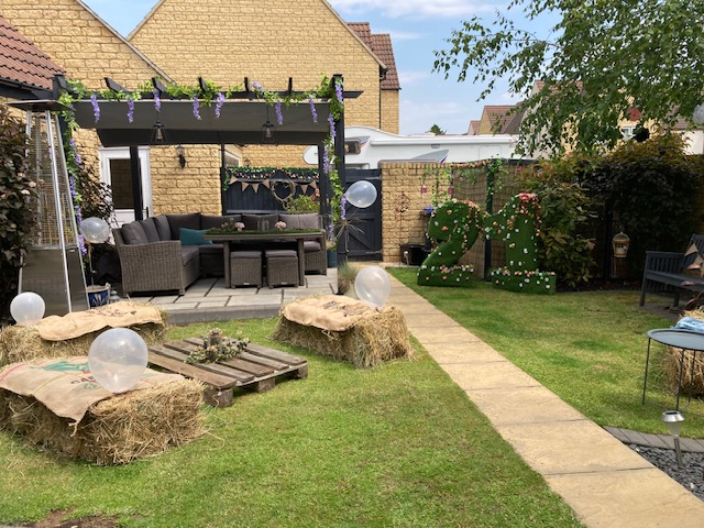 For example, for my daughter’s birthday party I bought faux wisteria, flower garlands and ivy, wrapping them around the pergola, bird feeders (I replaced the bird food with hanging lanterns, which when lit looked incredible) and fences. These then stayed up for the rest of the summer ready for any impromptu family/friend gatherings. I still have these stored in the garage, should the need arise for me to use them again.
